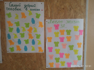 Учащиеся младших классов нарисовали рисунки на тему "Мои увлечения". Ученики средней и старшей школы поделились своими мыслями, высказали мнение о самом добром человеке в школе. Очень интересно было познакомиться с мыслями учащихся "Я люблю жизнь за...". Ученики 10-х классов провели соцопрос и подготовили видеорепотажи на темы "Мои жизненные ценности" и "Чего я хочу от жизни". 17 декабря - закрытие недели психологии прошло под девизом "Здесь вас любят и ждут.